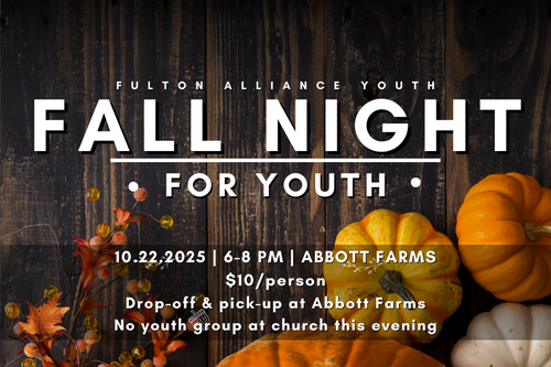 Youth Group will have a special fall night at Abbott Farms! Join us for fun, fellowship, and fall festivities!