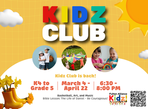 We’re excited to invite your kids (K4–Grade 5) to Spring Kidz Club: a fun, faith-filled experience this spring!