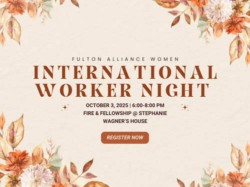 Join us for an evening of fellowship and faith! Hear from one of our International Workers and connect with other women.